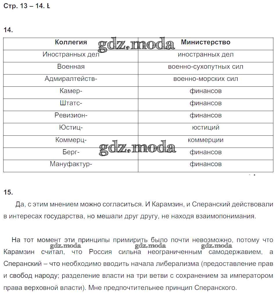 ГДЗ решение к заданию № 14 История России 9 класс рабочая тетрадь Стафёрова Е.Л. Русское слово 2019 ФГОС бесплатно на гдз.мода!