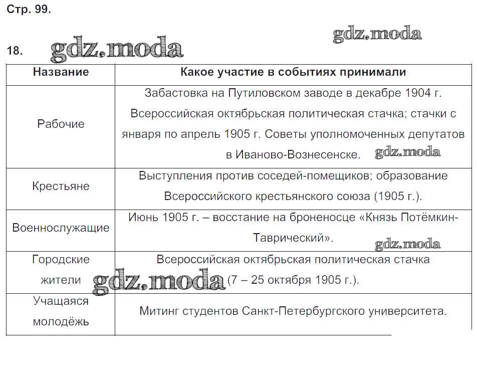 ГДЗ решение к заданию № 99 История России 9 класс рабочая тетрадь Стафёрова Е.Л. Русское слово 2019 ФГОС бесплатно на гдз.мода!
