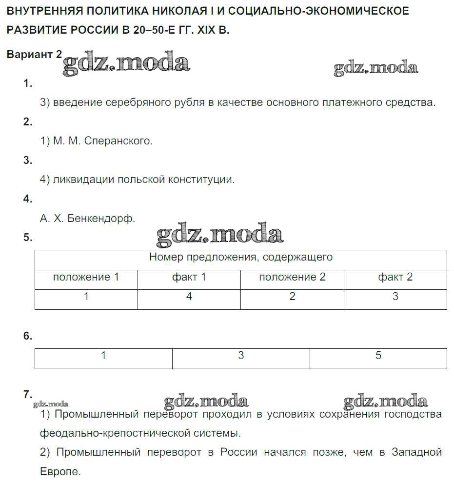 ГДЗ решение к заданию № 2 История России 9 класс тематический контроль Артасов И.А. Национальное образование 2019 ФГОС бесплатно на гдз.мода!