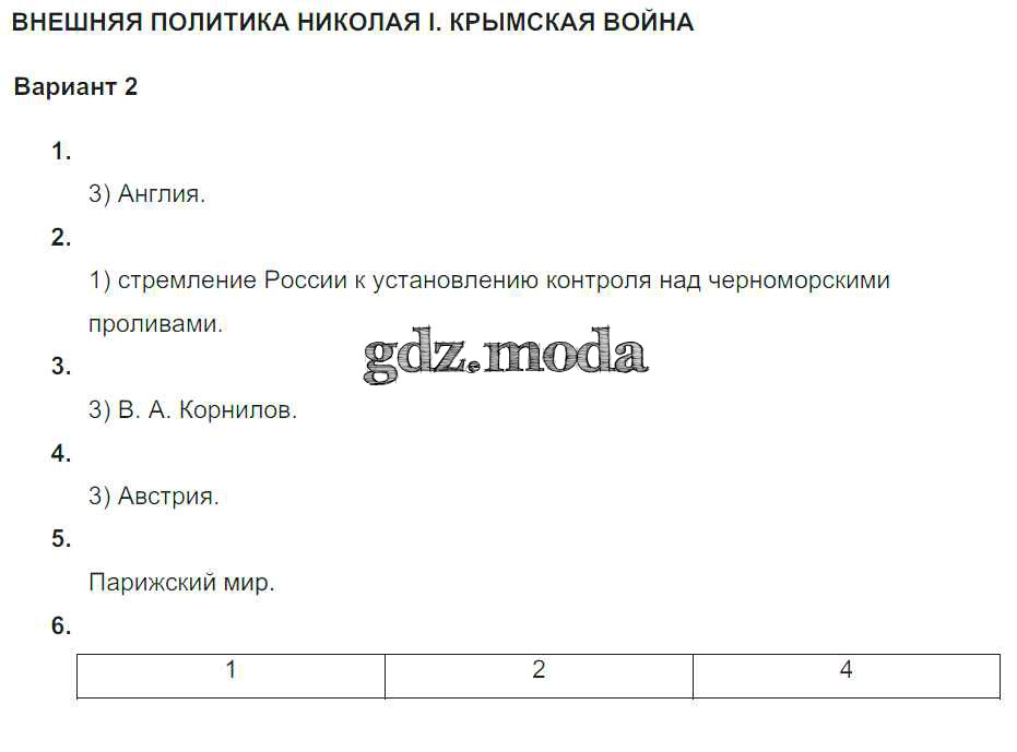 ГДЗ решение к заданию № 2 История России 9 класс тематический контроль Артасов И.А. Национальное образование 2019 ФГОС бесплатно на гдз.мода!
