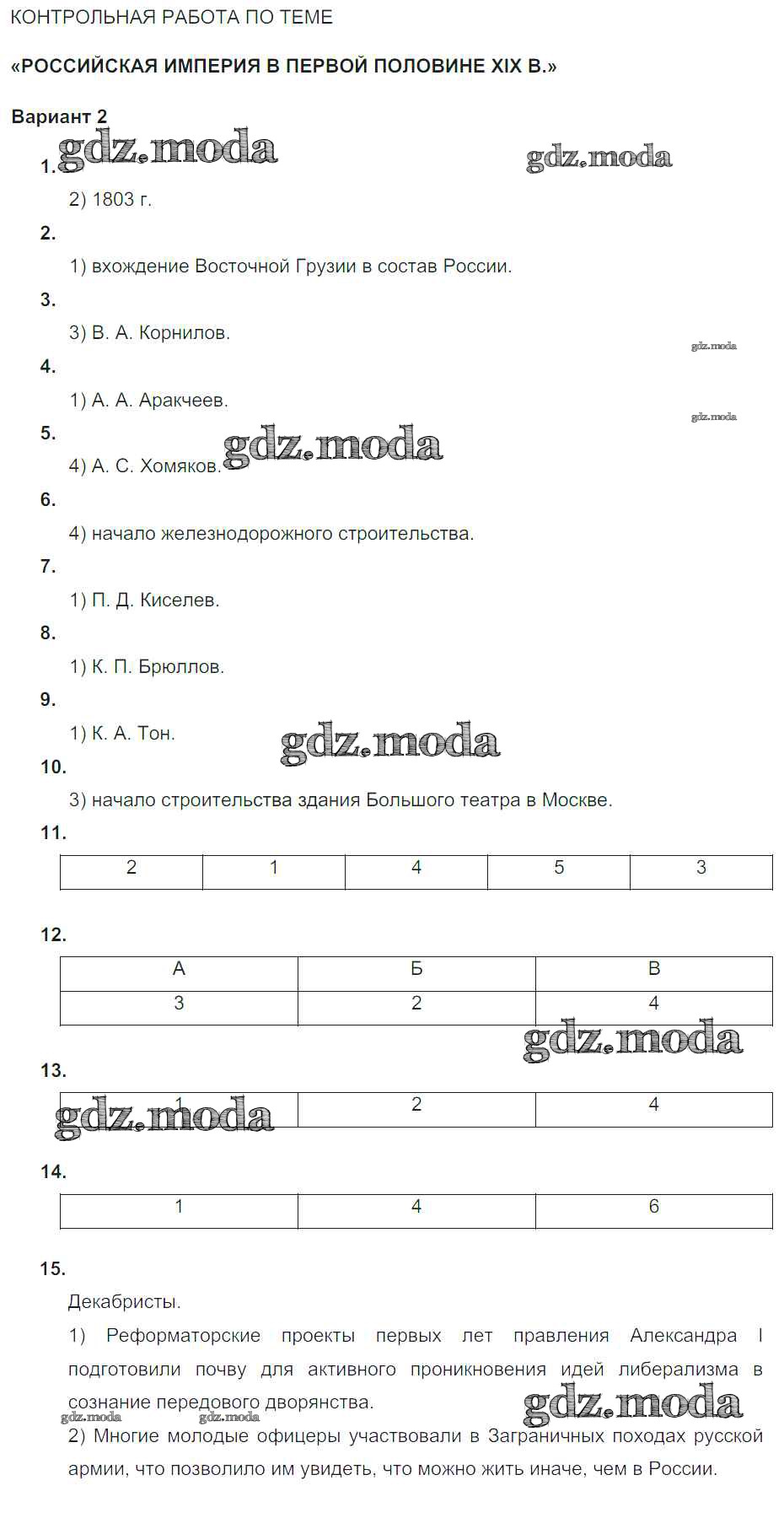 ГДЗ решение к заданию № 2 История России 9 класс тематический контроль Артасов И.А. Национальное образование 2019 ФГОС бесплатно на гдз.мода!