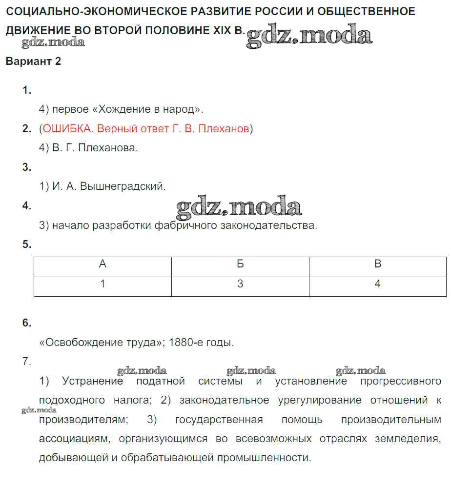 ГДЗ решение к заданию № 2 История России 9 класс тематический контроль Артасов И.А. Национальное образование 2019 ФГОС бесплатно на гдз.мода!