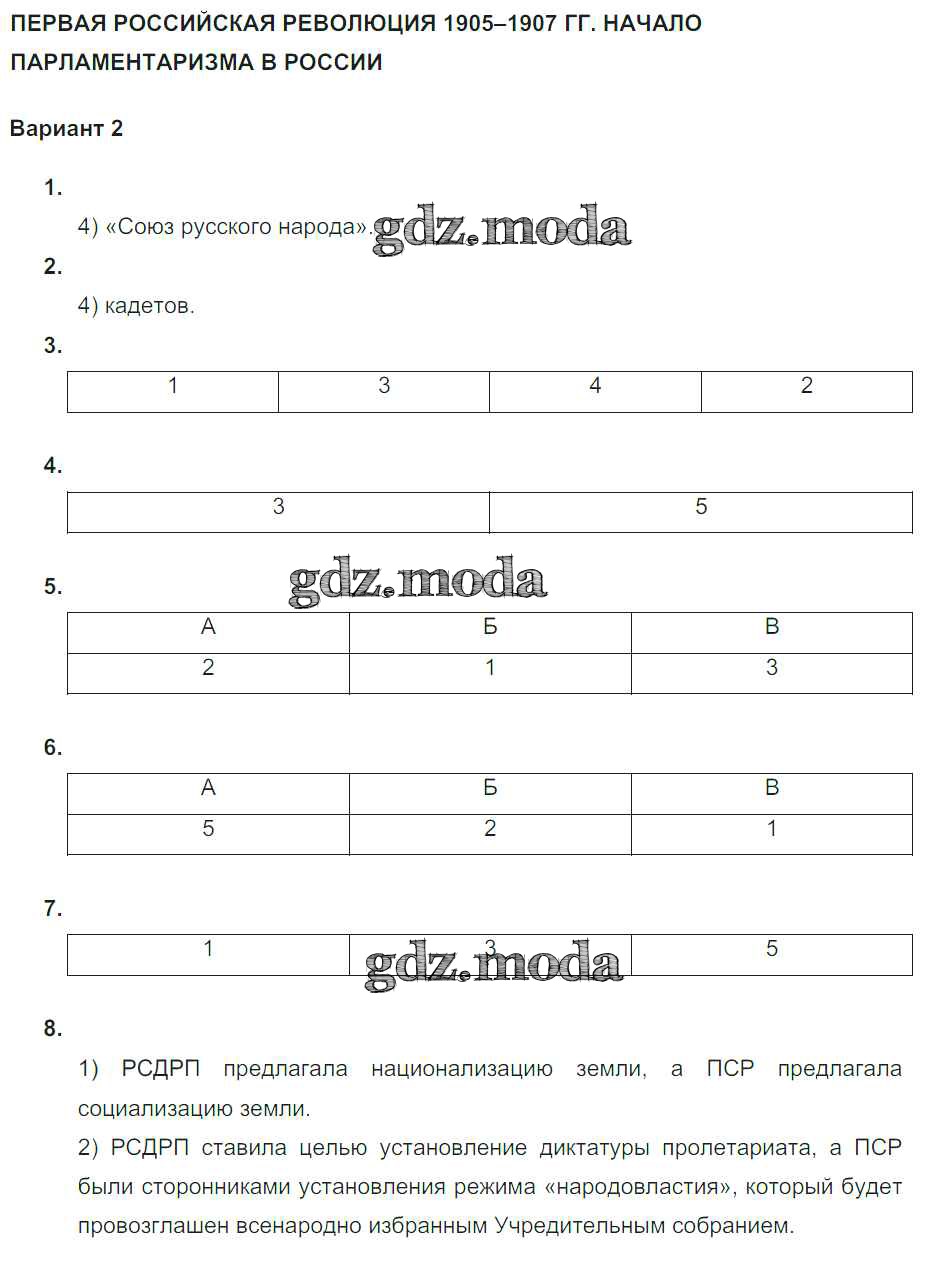 ГДЗ решение к заданию № 2 История России 9 класс тематический контроль Артасов И.А. Национальное образование 2019 ФГОС бесплатно на гдз.мода!