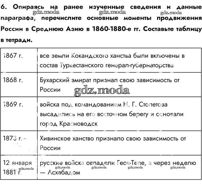 ГДЗ решение к заданию № 6 История 9 класс Арсентьев Н.М. Просвещение 2016 Часть 1, Часть 2 ФГОС бесплатно на гдз.мода!
