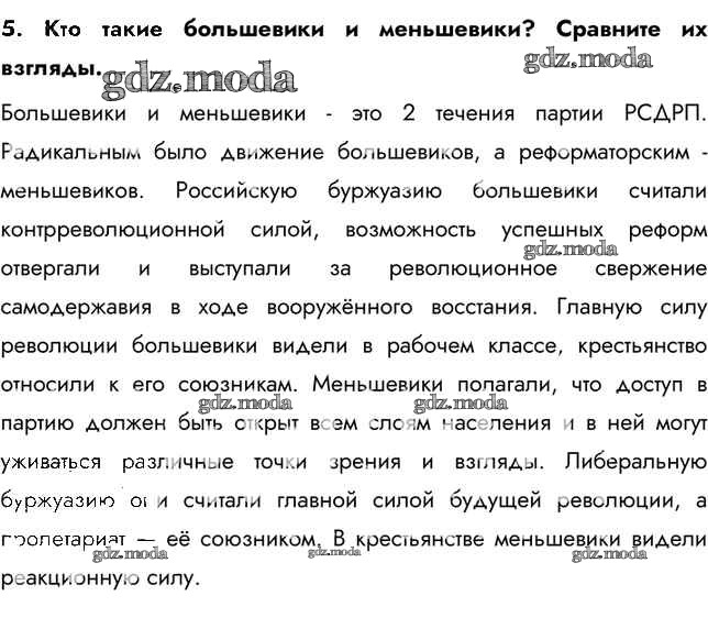 ГДЗ решение к заданию № 5 История 9 класс Арсентьев Н.М. Просвещение 2016 Часть 1, Часть 2 ФГОС бесплатно на гдз.мода!