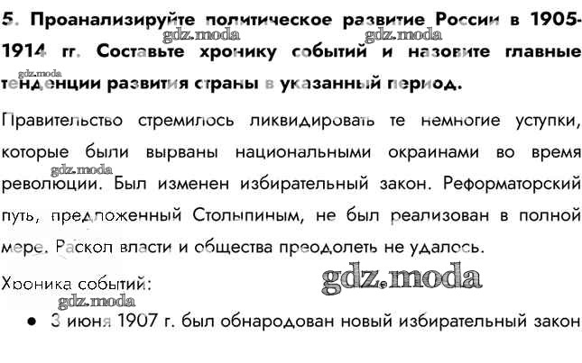 ГДЗ решение к заданию № 5 История 9 класс Арсентьев Н.М. Просвещение 2016 Часть 1, Часть 2 ФГОС бесплатно на гдз.мода!