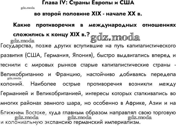 ОТВЕТ на задание № Страны Европы и США во второй половине XIX - начале XX в. Учебник по Истории 9 класс Юдовская