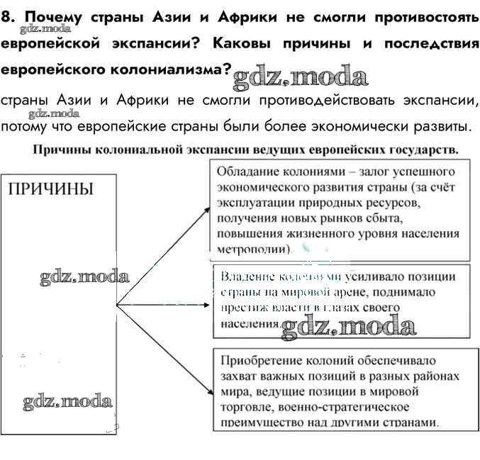 ГДЗ решение к заданию № 8 Всеобщая история. История Нового времени 9 класс Юдовская А.Я. Просвещение 2019 ФГОС бесплатно на гдз.мода!