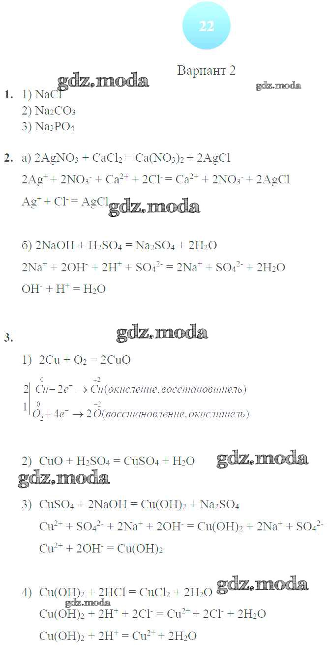 ГДЗ решение к заданию № вариант-2 Химия 9 класс тетрадь-экзаменатор Бобылева О.Л. Просвещение 2014 ФГОС бесплатно на гдз.мода!