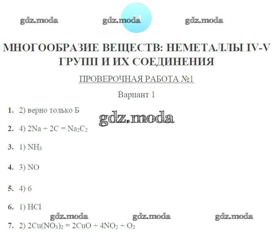 Многообразие веществ: Неметаллы IV-V групп и их соединения / пр-1 / вариант-1