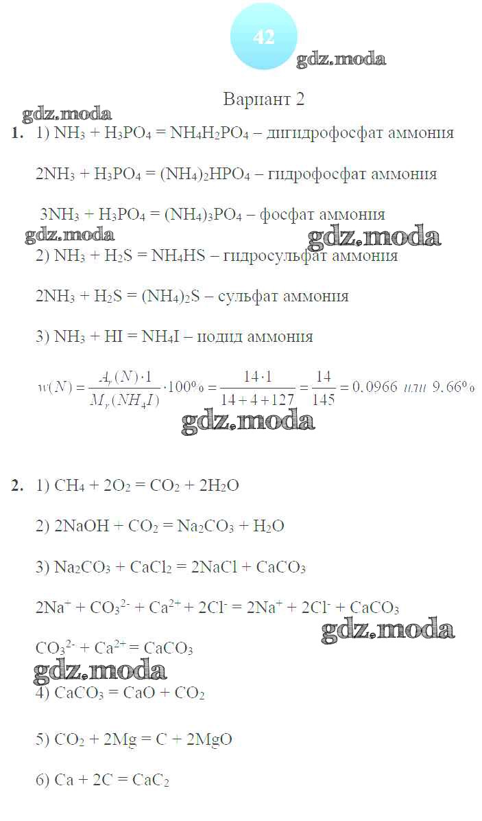ГДЗ решение к заданию № вариант-2 Химия 9 класс тетрадь-экзаменатор Бобылева О.Л. Просвещение 2014 ФГОС бесплатно на гдз.мода!