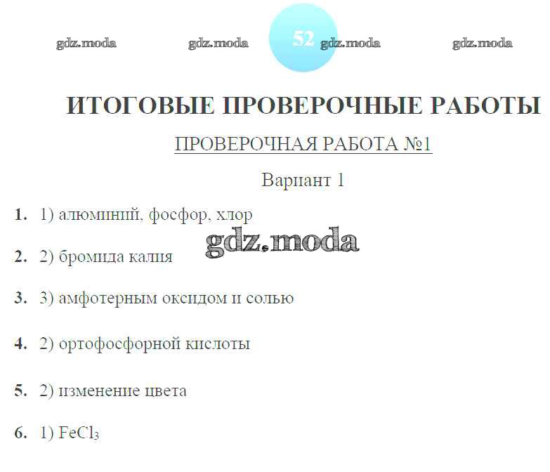 ГДЗ решение к заданию № вариант-1 Химия 9 класс тетрадь-экзаменатор Бобылева О.Л. Просвещение 2014 ФГОС бесплатно на гдз.мода!