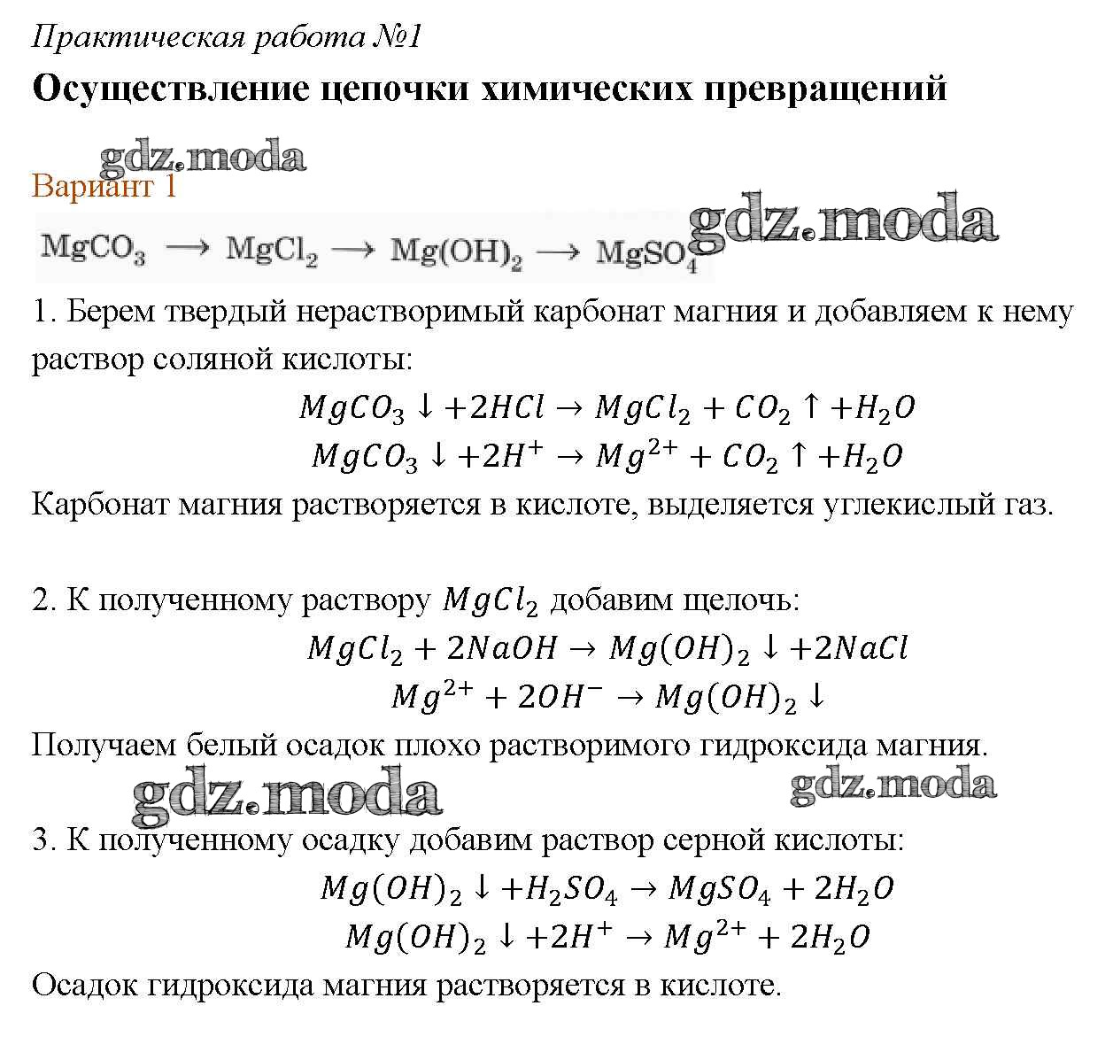 ОТВЕТ на задание № вариант-1 Учебник по Химии 9 класс Габриелян Вертикаль