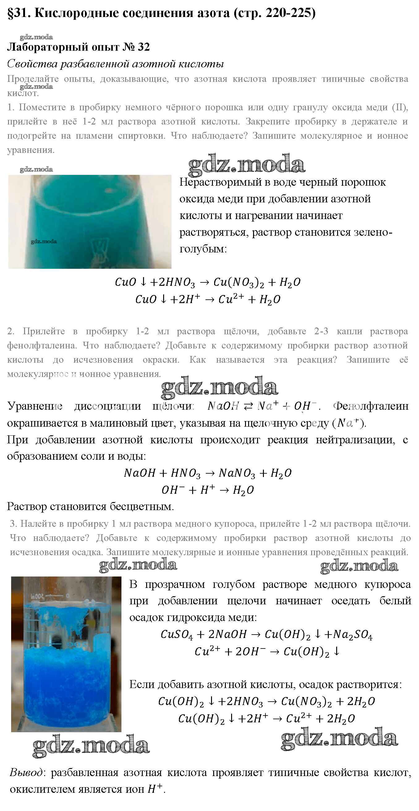 ГДЗ решение к заданию № №32 Химия 9 класс Габриелян О.С. Дрофа 2014 ФГОС бесплатно на гдз.мода!