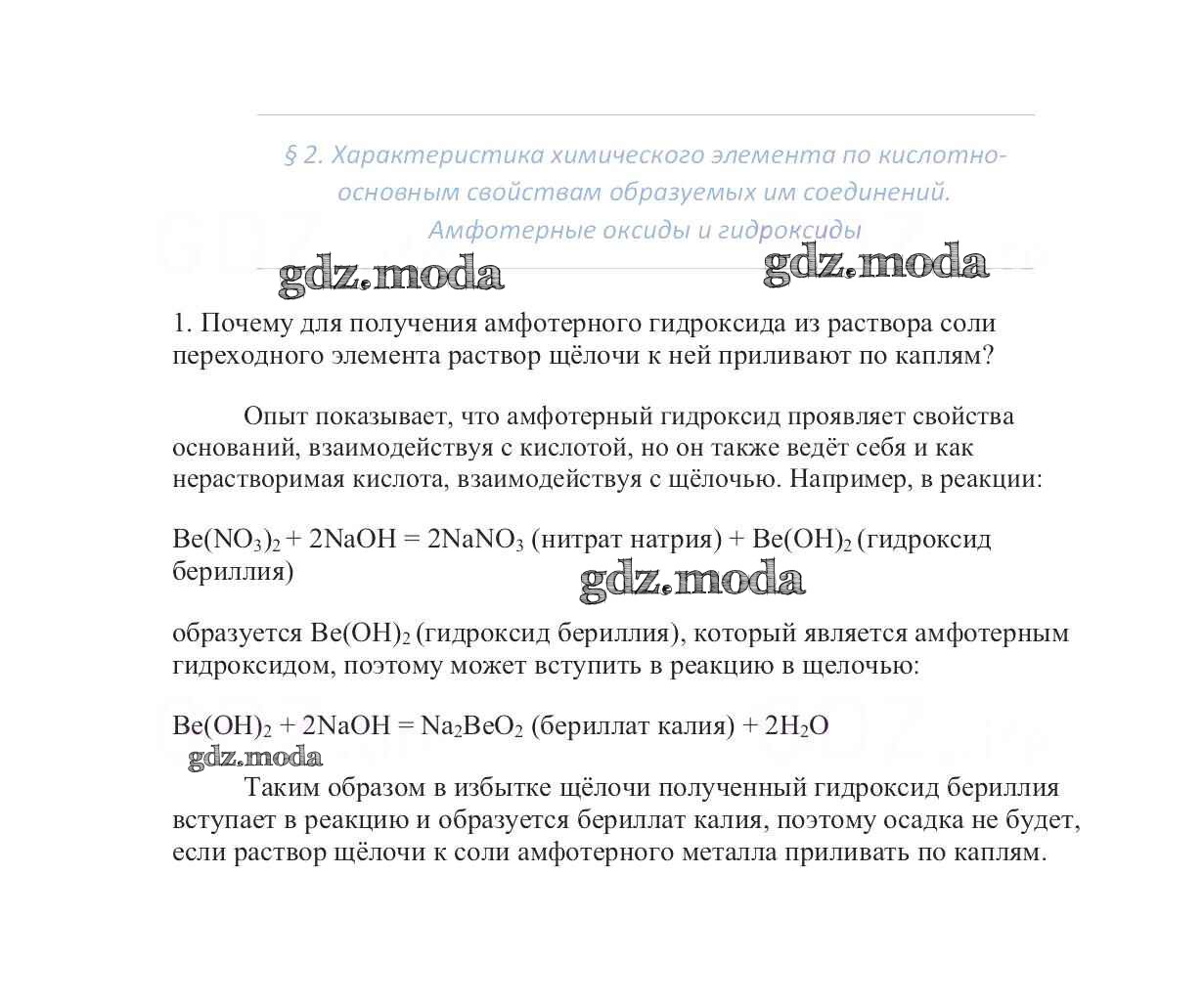 ГДЗ решение к заданию № 1 Химия 9 класс Габриелян О.С. Дрофа 2014 ФГОС бесплатно на гдз.мода!