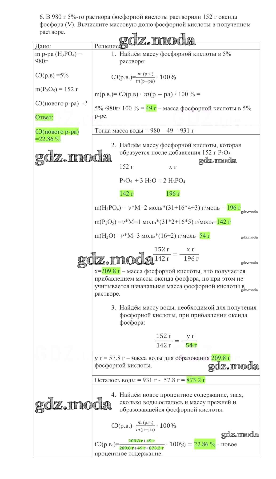 ГДЗ решение к заданию № 6 Химия 9 класс Габриелян О.С. Дрофа 2014 ФГОС бесплатно на гдз.мода!
