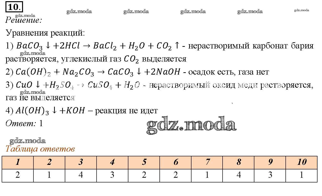 ГДЗ решение к заданию № 10 Химия 9 класс Габриелян О.С. Дрофа 2014 ФГОС бесплатно на гдз.мода!