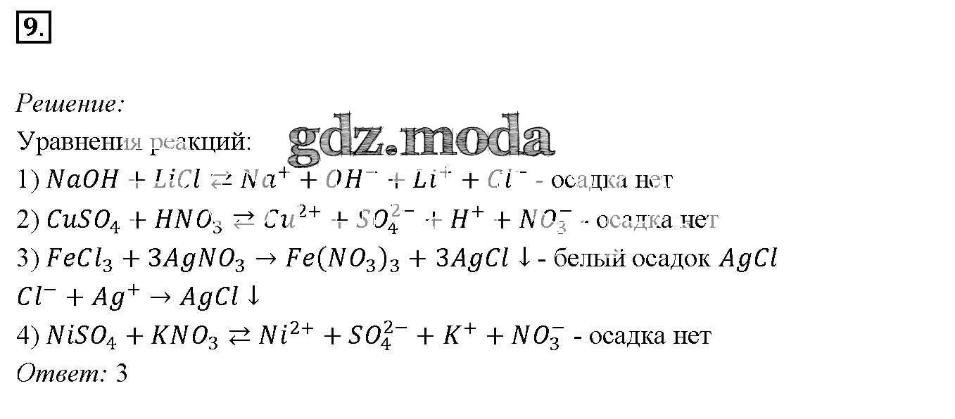 ГДЗ решение к заданию № 9 Химия 9 класс Габриелян О.С. Дрофа 2014 ФГОС бесплатно на гдз.мода!