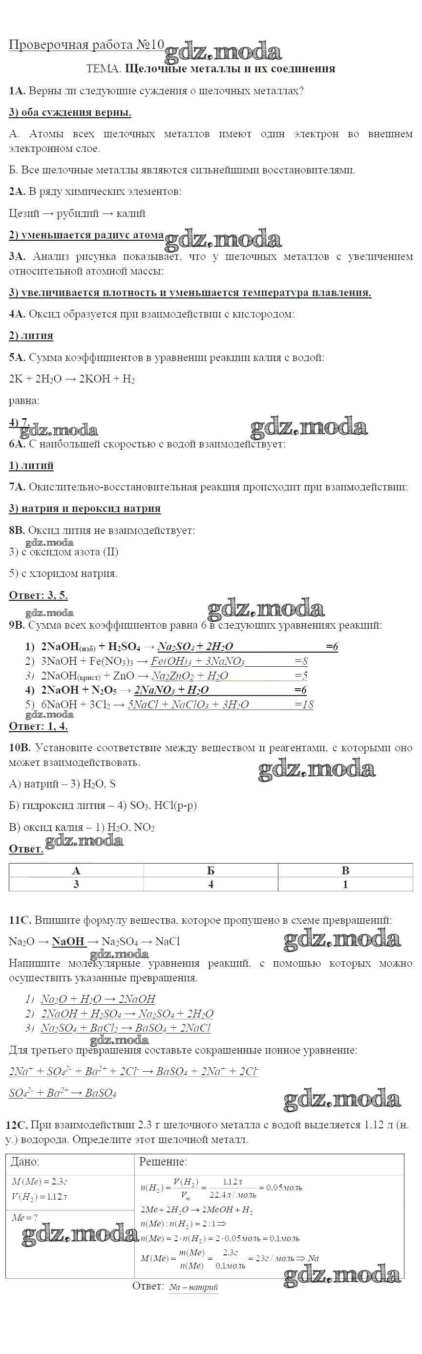 ОТВЕТ на задание № ПР-10. Щелочные металлы и их соединения Тетрадь для оценки качества знаний по Химии 9 класс Габриелян Вертикаль
