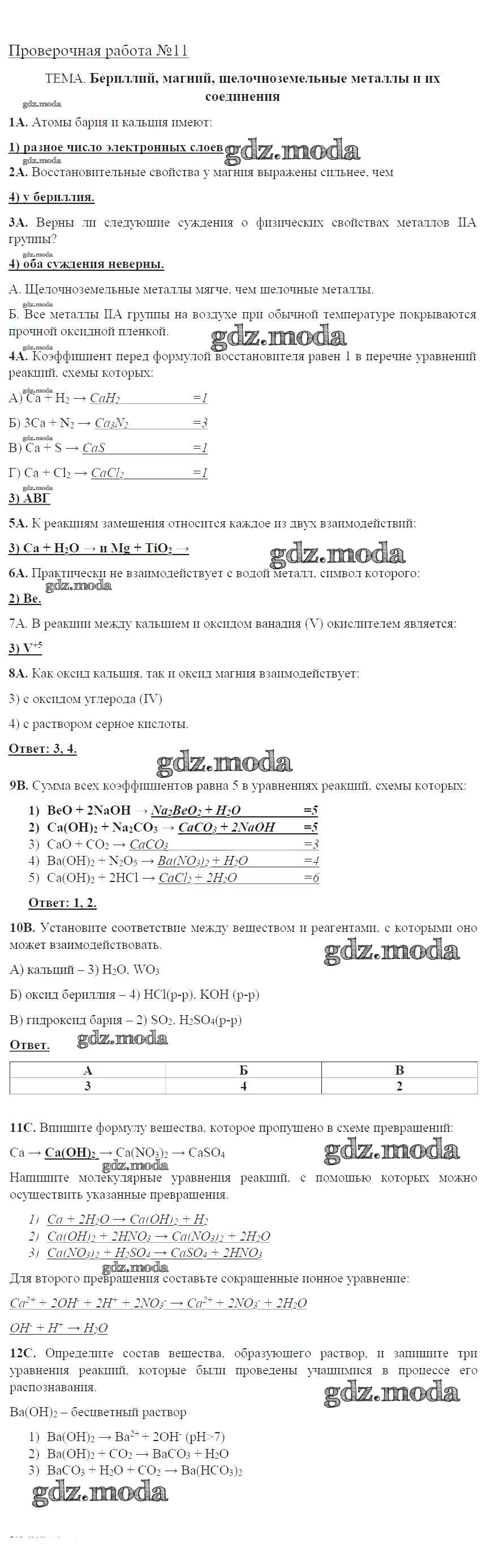 ОТВЕТ на задание № ПР-11. Берилий, магний, щелочноземельные металлы и их свойства Тетрадь для оценки качества знаний по Химии 9 класс Габриелян Вертикаль
