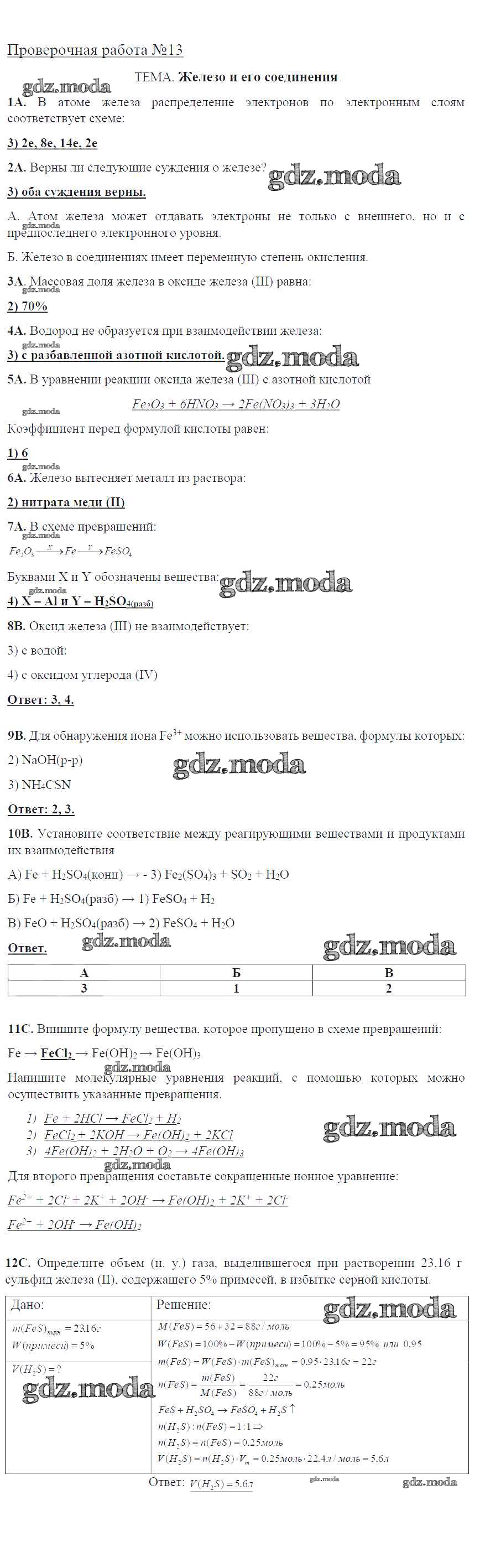ГДЗ решение к заданию № ПР-13. Железо и его соединения Химия 9 класс тетрадь для оценки качества знаний Габриелян О.С. (к уч. Габриеляна) Дрофа 2017 ФГОС бесплатно на гдз.мода!
