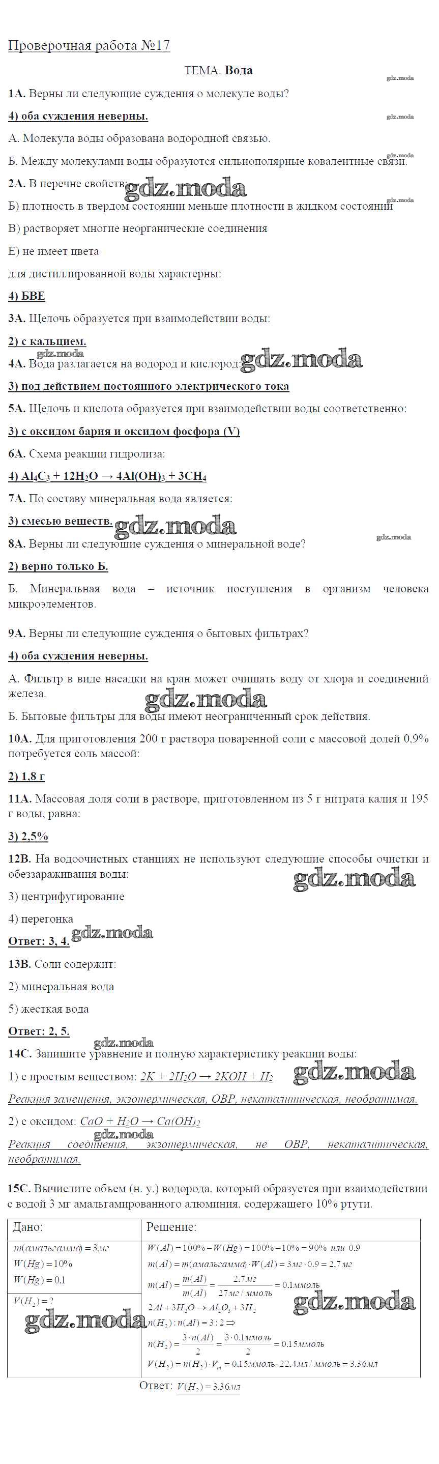ГДЗ решение к заданию № ПР-17. Вода Химия 9 класс тетрадь для оценки качества знаний Габриелян О.С. (к уч. Габриеляна) Дрофа 2017 ФГОС бесплатно на гдз.мода!