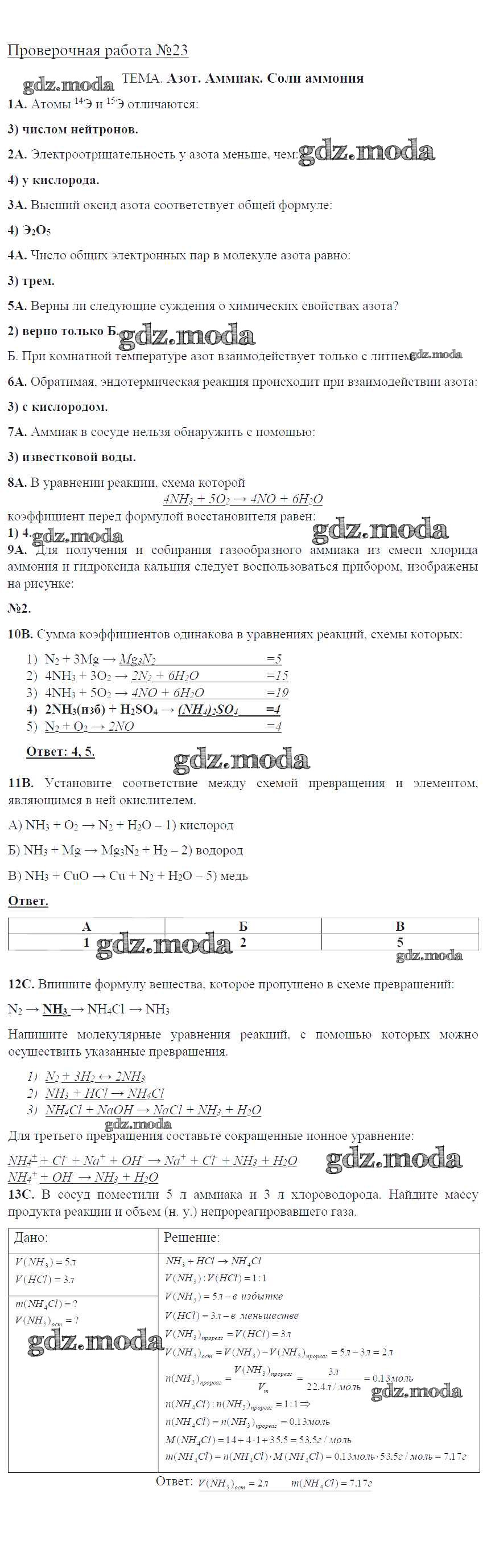 ГДЗ решение к заданию № ПР-23. Азот. Аммиак. Соли аммония Химия 9 класс тетрадь для оценки качества знаний Габриелян О.С. (к уч. Габриеляна) Дрофа 2017 ФГОС бесплатно на гдз.мода!