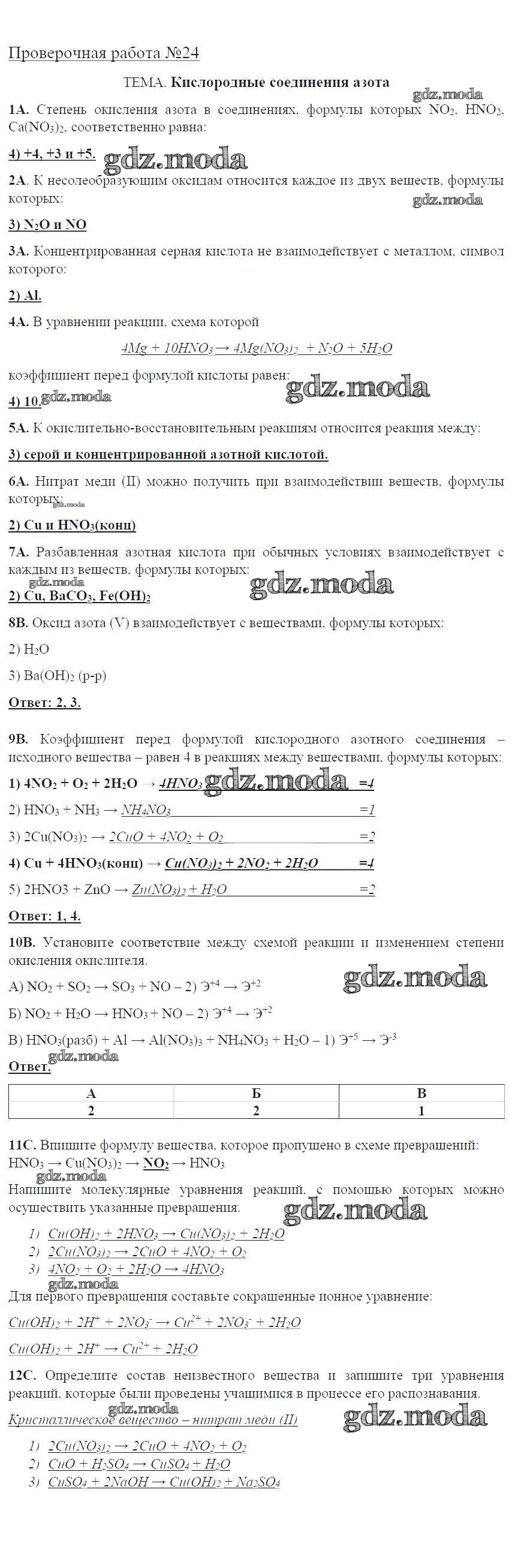 ОТВЕТ на задание № ПР-24. Кислородные соединения азота Тетрадь для оценки качества знаний по Химии 9 класс Габриелян Вертикаль
