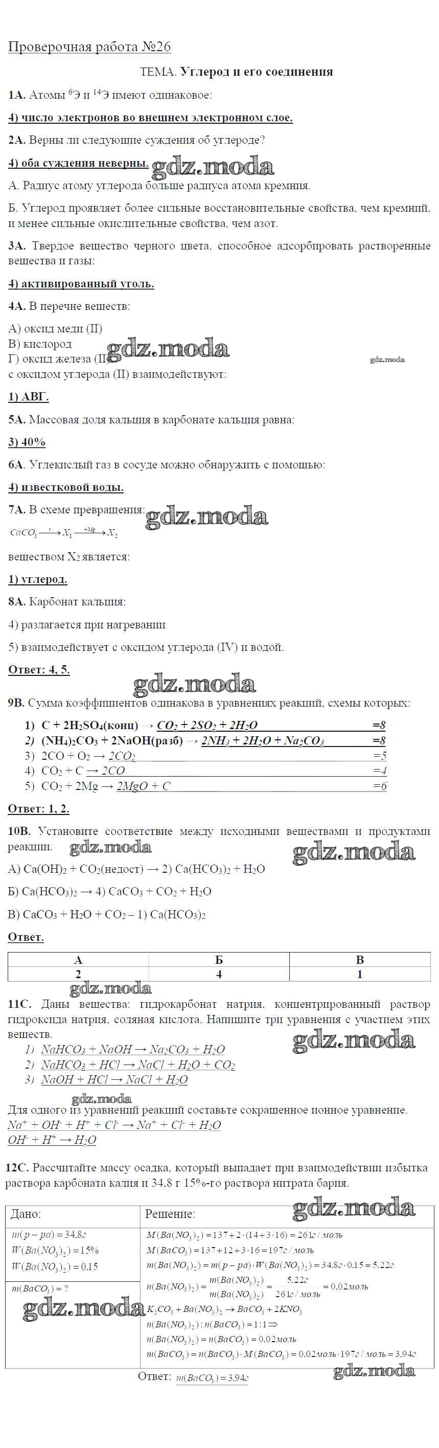 ГДЗ решение к заданию № ПР-26. Углерод и его соединения Химия 9 класс тетрадь для оценки качества знаний Габриелян О.С. (к уч. Габриеляна) Дрофа 2017 ФГОС бесплатно на гдз.мода!