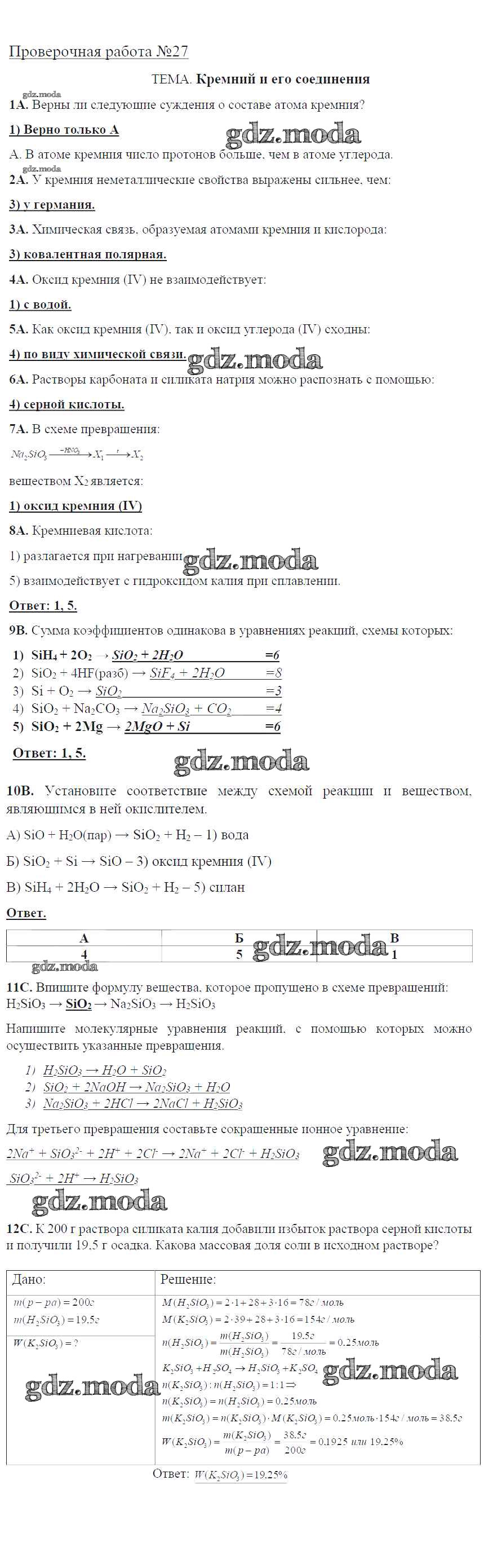 проверочная работа / пр-27. Кремний и его соединения