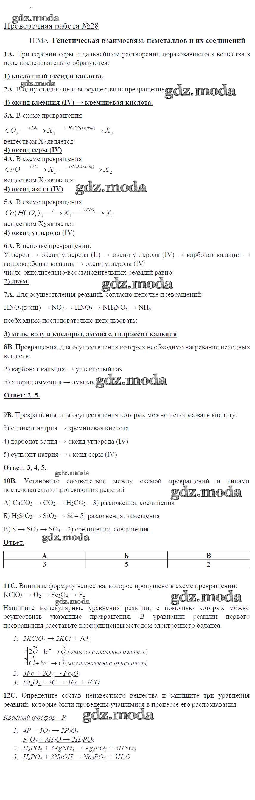 ОТВЕТ на задание № ПР-28. Генетическая взаимосвязь неметаллов и их соединений Тетрадь для оценки качества знаний по Химии 9 класс Габриелян Вертикаль