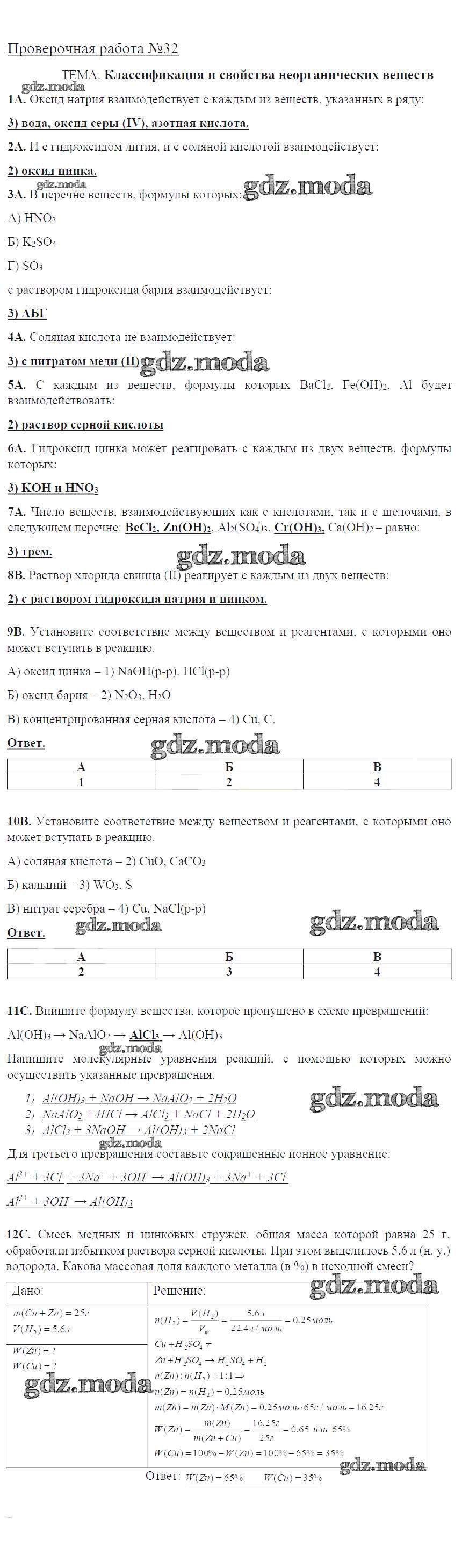 ОТВЕТ на задание № ПР-32. Классификация и свойства неорганических веществ Тетрадь для оценки качества знаний по Химии 9 класс Габриелян Вертикаль