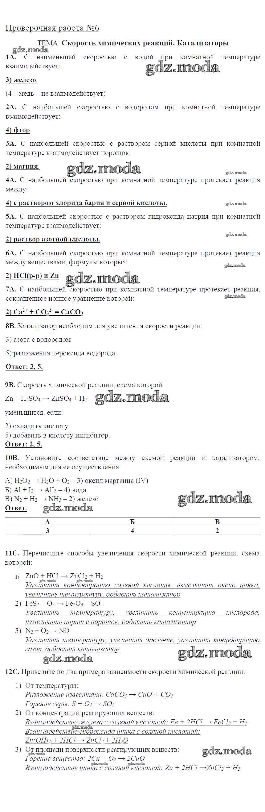 ОТВЕТ на задание № ПР-6. Скорость химических реакций. Катализаторы Тетрадь для оценки качества знаний по Химии 9 класс Габриелян Вертикаль