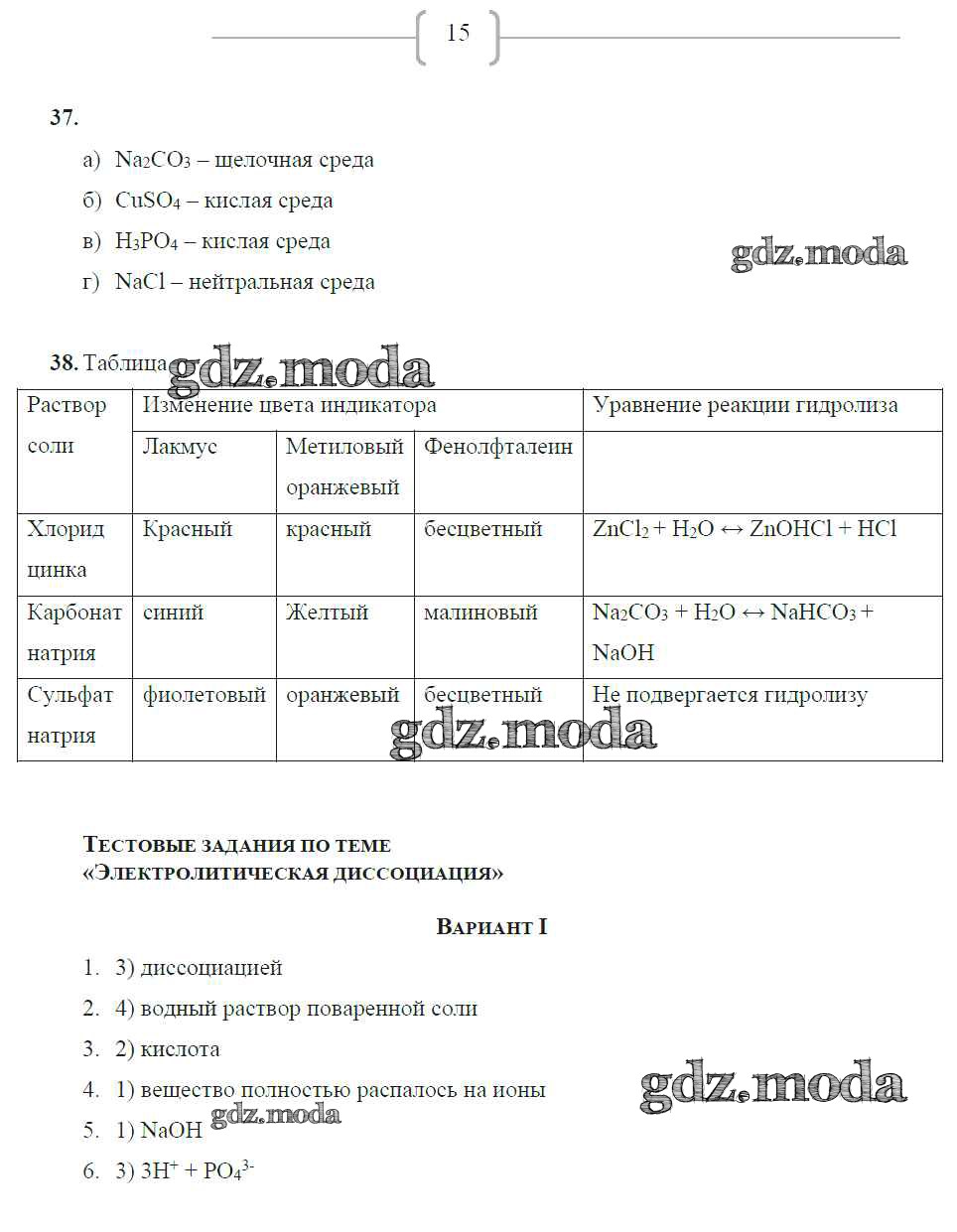 ОТВЕТ на задание № 15 Рабочая тетрадь по Химии 9 класс Габрусева