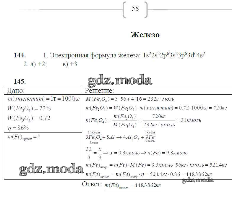 ГДЗ решение к заданию № 58 Химия 9 класс рабочая тетрадь Габрусева Н.И. Просвещение 2012 ФГОС бесплатно на гдз.мода!