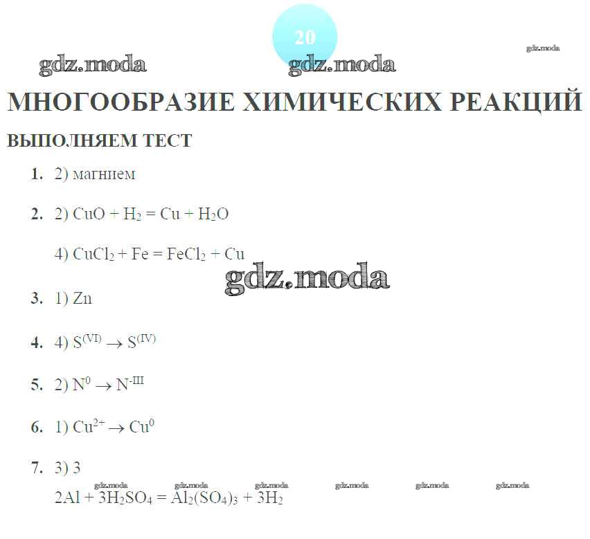 ГДЗ решение к заданию № 20 Химия 9 класс тетрадь-тренажер Гара Н.Н. Просвещение 2014 ФГОС бесплатно на гдз.мода!