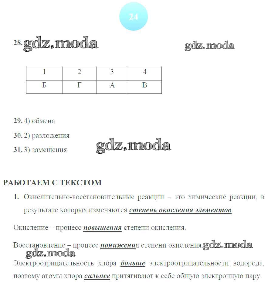 ГДЗ решение к заданию № 24 Химия 9 класс тетрадь-тренажер Гара Н.Н. Просвещение 2014 ФГОС бесплатно на гдз.мода!