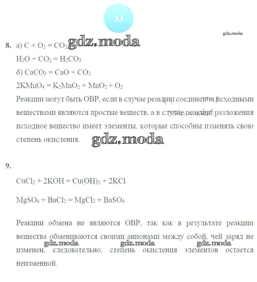 ГДЗ решение к заданию № 33 Химия 9 класс тетрадь-тренажер Гара Н.Н. Просвещение 2014 ФГОС бесплатно на гдз.мода!