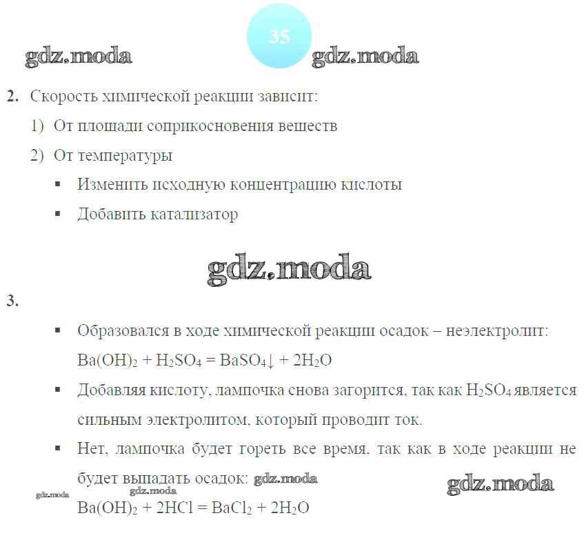 ГДЗ решение к заданию № 35 Химия 9 класс тетрадь-тренажер Гара Н.Н. Просвещение 2014 ФГОС бесплатно на гдз.мода!