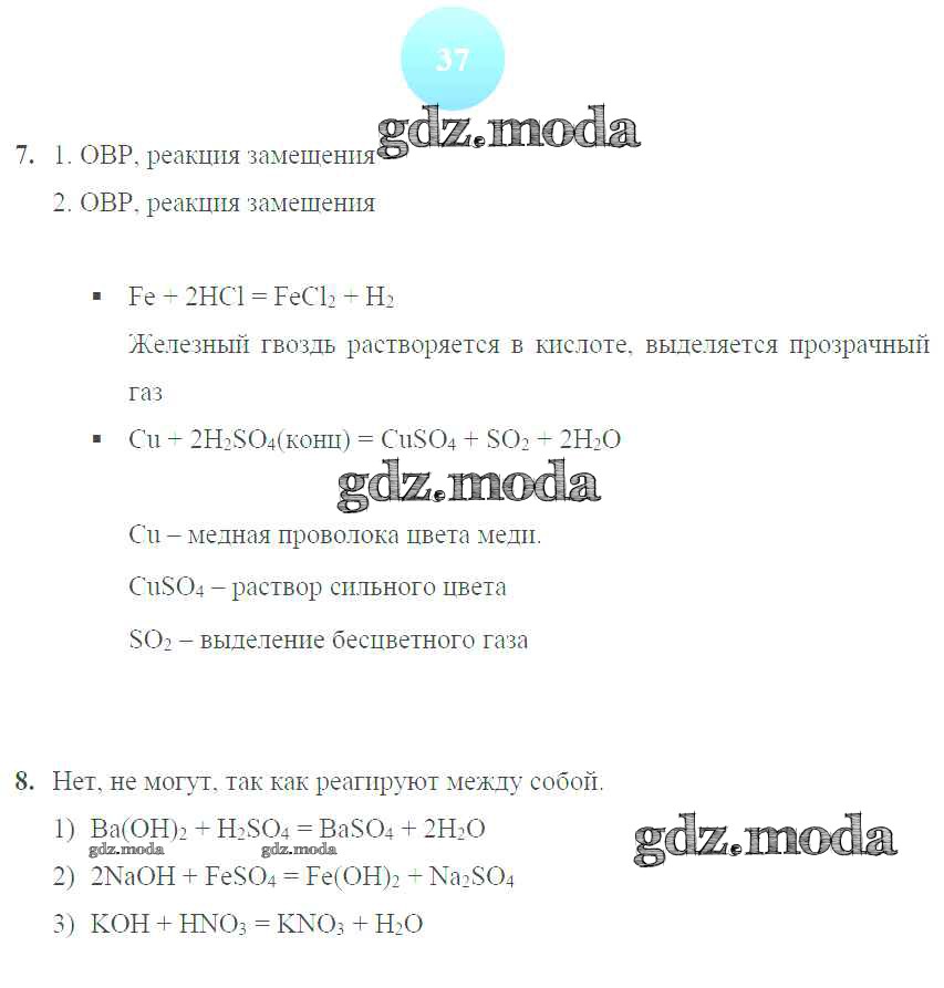 ГДЗ решение к заданию № 37 Химия 9 класс тетрадь-тренажер Гара Н.Н. Просвещение 2014 ФГОС бесплатно на гдз.мода!