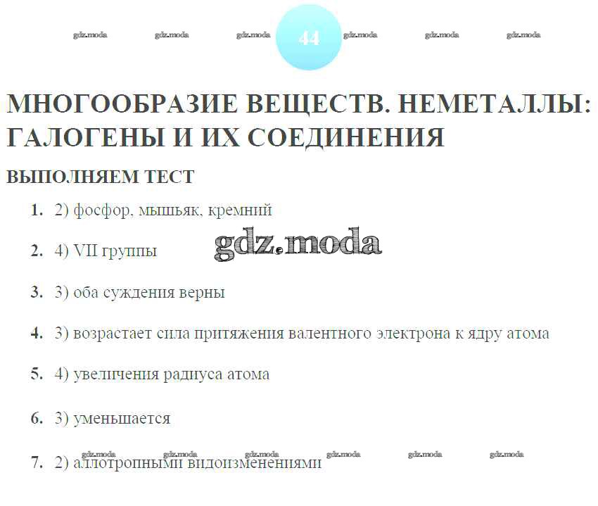 ГДЗ решение к заданию № 44 Химия 9 класс тетрадь-тренажер Гара Н.Н. Просвещение 2014 ФГОС бесплатно на гдз.мода!