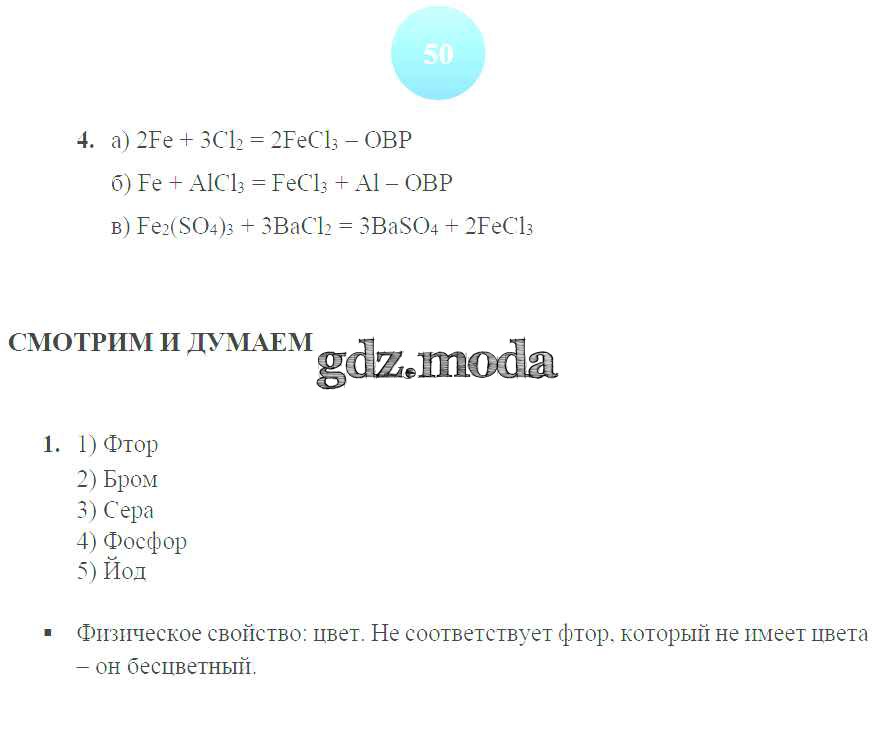 ГДЗ решение к заданию № 50 Химия 9 класс тетрадь-тренажер Гара Н.Н. Просвещение 2014 ФГОС бесплатно на гдз.мода!
