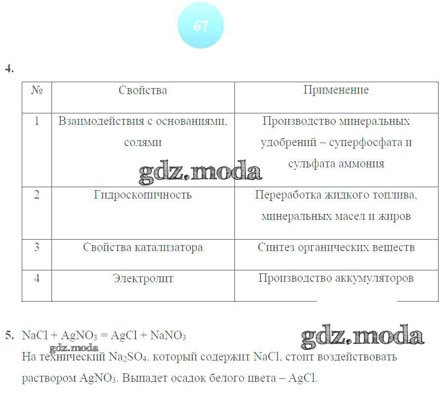 ГДЗ решение к заданию № 67 Химия 9 класс тетрадь-тренажер Гара Н.Н. Просвещение 2014 ФГОС бесплатно на гдз.мода!