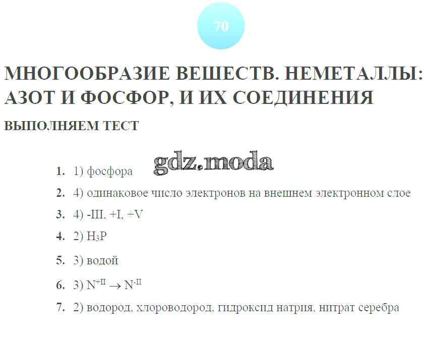 ГДЗ решение к заданию № 70 Химия 9 класс тетрадь-тренажер Гара Н.Н. Просвещение 2014 ФГОС бесплатно на гдз.мода!