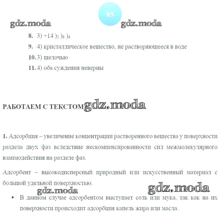 ГДЗ решение к заданию № 85 Химия 9 класс тетрадь-тренажер Гара Н.Н. Просвещение 2014 ФГОС бесплатно на гдз.мода!