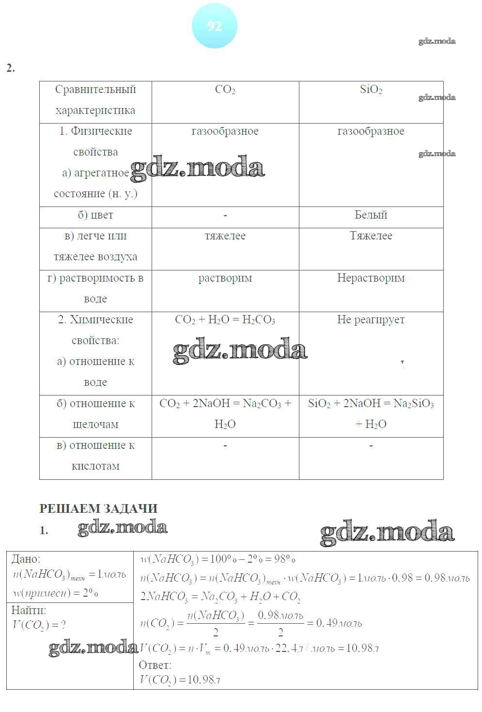 ГДЗ решение к заданию № 92 Химия 9 класс тетрадь-тренажер Гара Н.Н. Просвещение 2014 ФГОС бесплатно на гдз.мода!