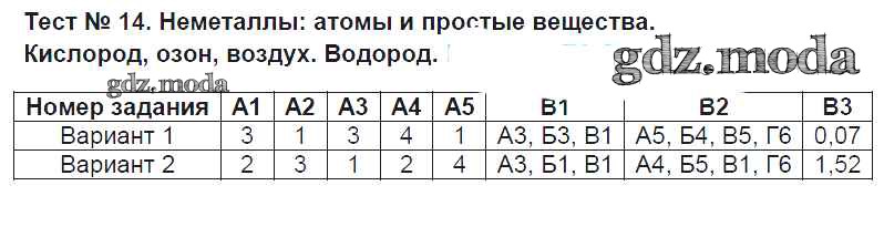 ГДЗ решение к заданию № Тест №14. Неметаллы - атомы и простые вещества Химия 9 класс контрольно-измерительные материалы Стрельникова Е.Н. ВАКО 2017 ФГОС бесплатно на гдз.мода!