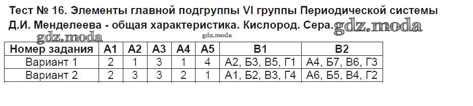 ГДЗ решение к заданию № Тест №16. Элементы главной подгруппы vi группы Периодической системы Д.И. Менделеева - общая характеристика. Кислород. Сера Химия 9 класс контрольно-измерительные материалы Стрельникова Е.Н. ВАКО 2017 ФГОС бесплатно на гдз.мода!