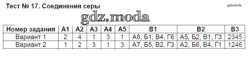 ГДЗ решение к заданию № Тест №17. Соединения серы Химия 9 класс контрольно-измерительные материалы Стрельникова Е.Н. ВАКО 2017 ФГОС бесплатно на гдз.мода!