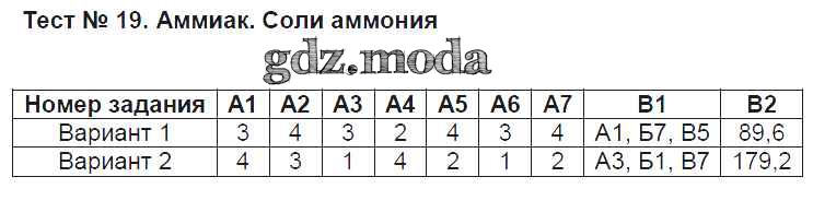 ГДЗ решение к заданию № Тест №19. Аммиак. Соли аммония Химия 9 класс контрольно-измерительные материалы Стрельникова Е.Н. ВАКО 2017 ФГОС бесплатно на гдз.мода!